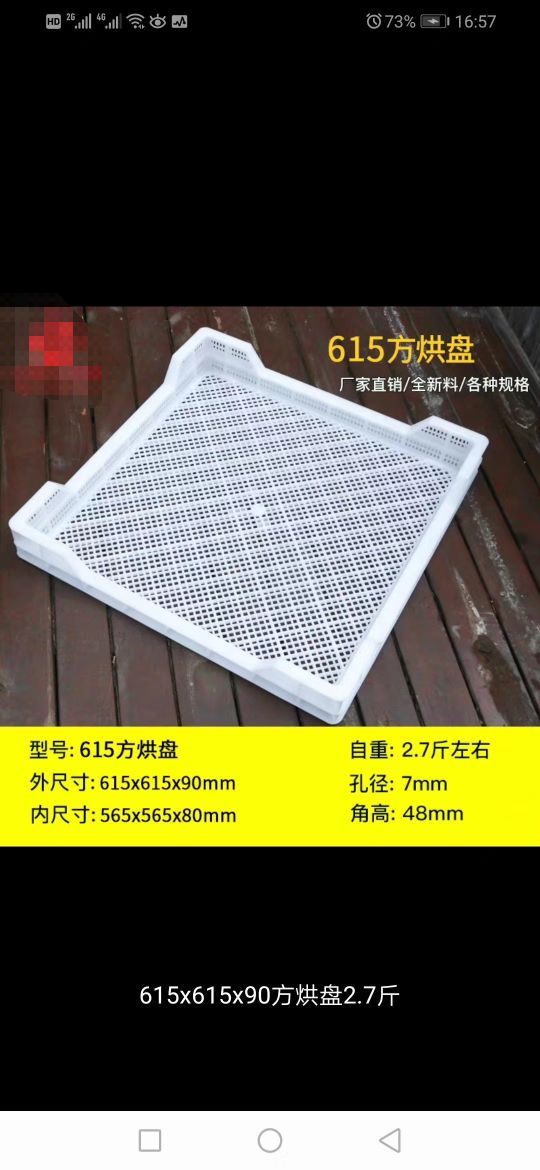 產(chǎn)品名稱:615塑料方烘盤